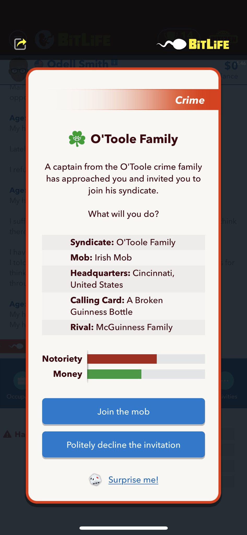 Make sure you set your gender to male your country to the United States and. The latest update allows players to be what they want and if you really want to live a life of the Godfather and the Mob boss then BitLife is a game that you will have to play right now. You can also be approached rarely by a Mafia crime member to join prior to hitting this five crime threshold.